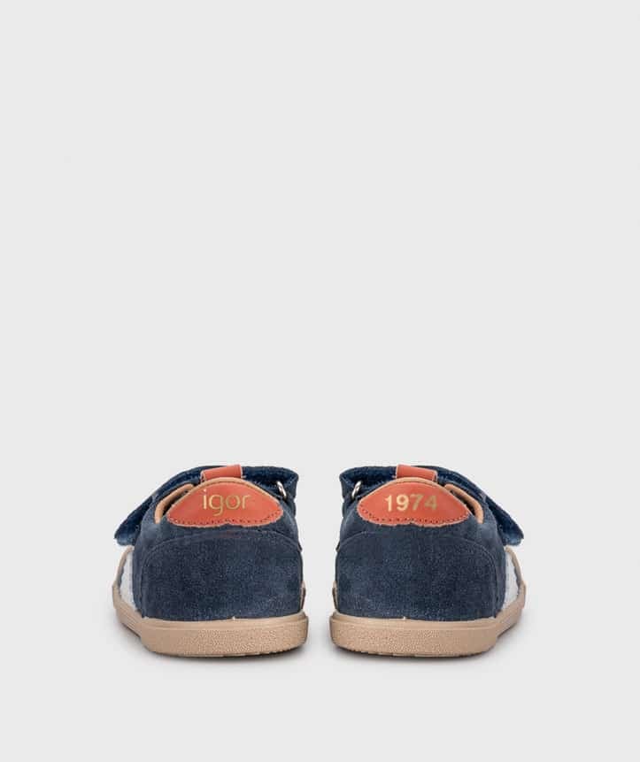 Велурени боси сникърси на испанската марка IGOR. От новата им колекция, леки и гъвкави. С подплата от естествена кожа. С мека подметка Zero Drop, която е неплъзгаща се и има гумирана част и при пръстите – за по-голяма устойчивост и при по-интензивно носене.