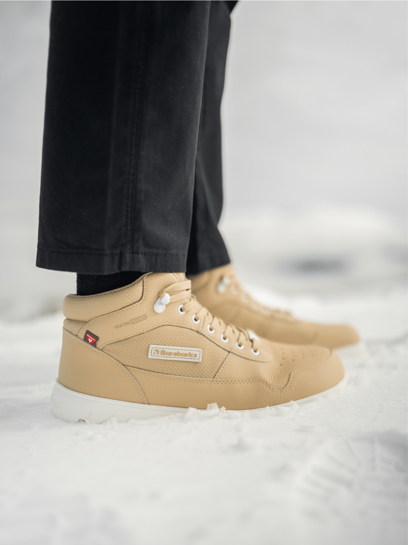 - Лого на Barebarics, поставено на обувката, капсите за връзки, връзките и подметката